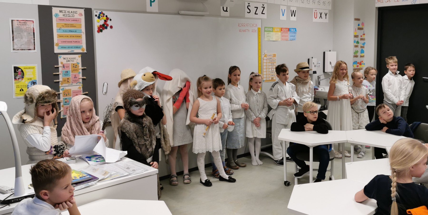 Selle nädala sisse jäi ka kadripäev. Käisime traditsioonide kohaselt kadrilaupäeval kolmes õpigrupis. Kaasas hani, kurg, sokk, karu ja kadripere oma lastega. Lisell oli tubli pillimees ja Sebastianiga oli pererahval lust tantsu lüüa. Oli ikka vahva koolipäev! 🥰