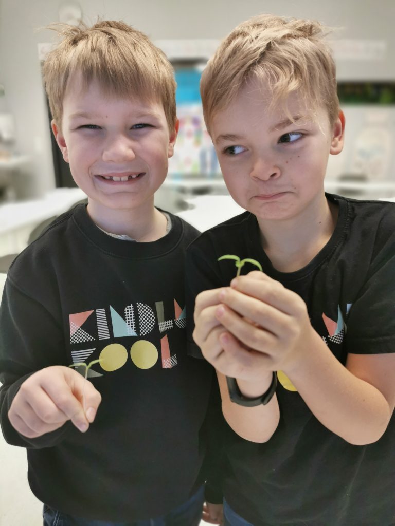 Lukas ja Mattias olid esimesed julged, kes tõmbasid välja oma istutuspottidest üleliigsed tomatitaimed. Sellega kaasnevad emotsioonid on tajutavad poiste nägudest.