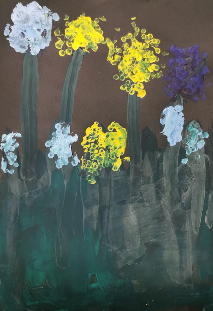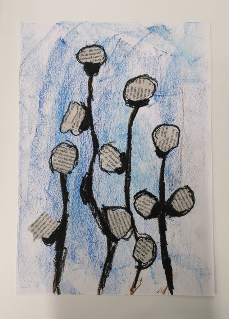 Joonistasime Ukraina toetuseks kevadised lilled. Õite tegemisel kasutasime täpitamise tehnikat.