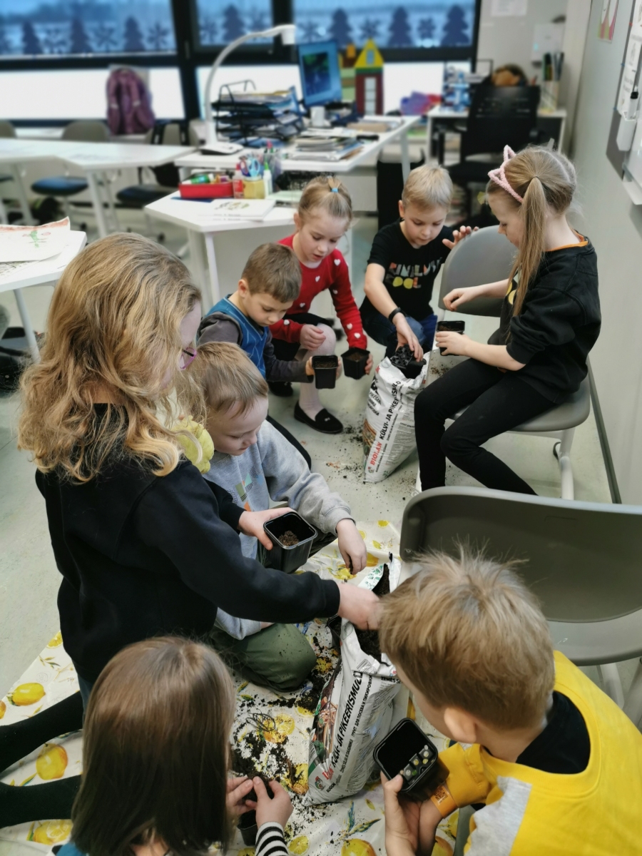 Alustasime koos uue ühise projektiga “Tomat”. Vaatasime videot, kuidas üks tomatitaim mullast end välja ajab, kuidas tulevad lehed, õied ja viljad. Joonistasime üles, mis on taime kasvuks vajalik. Seemned said kenasti mulda, nüüd pole muud kui oodata. 🍅🌞👍