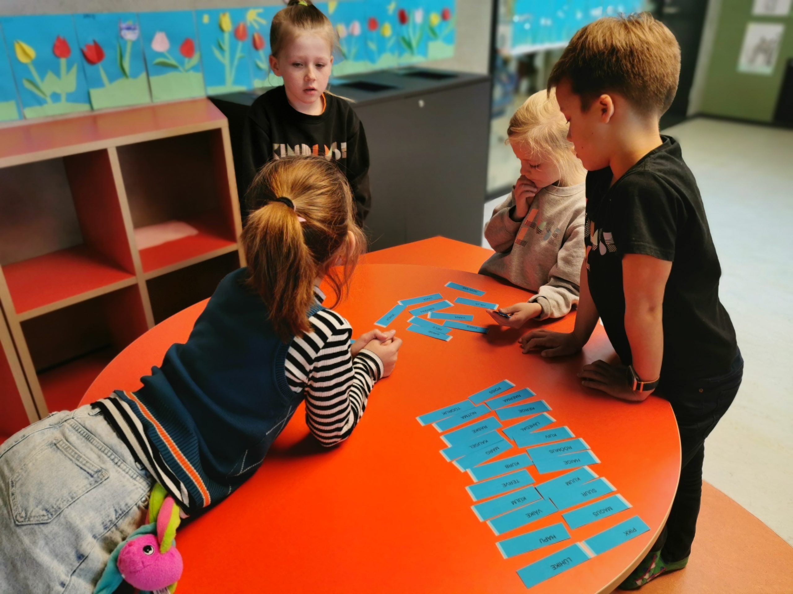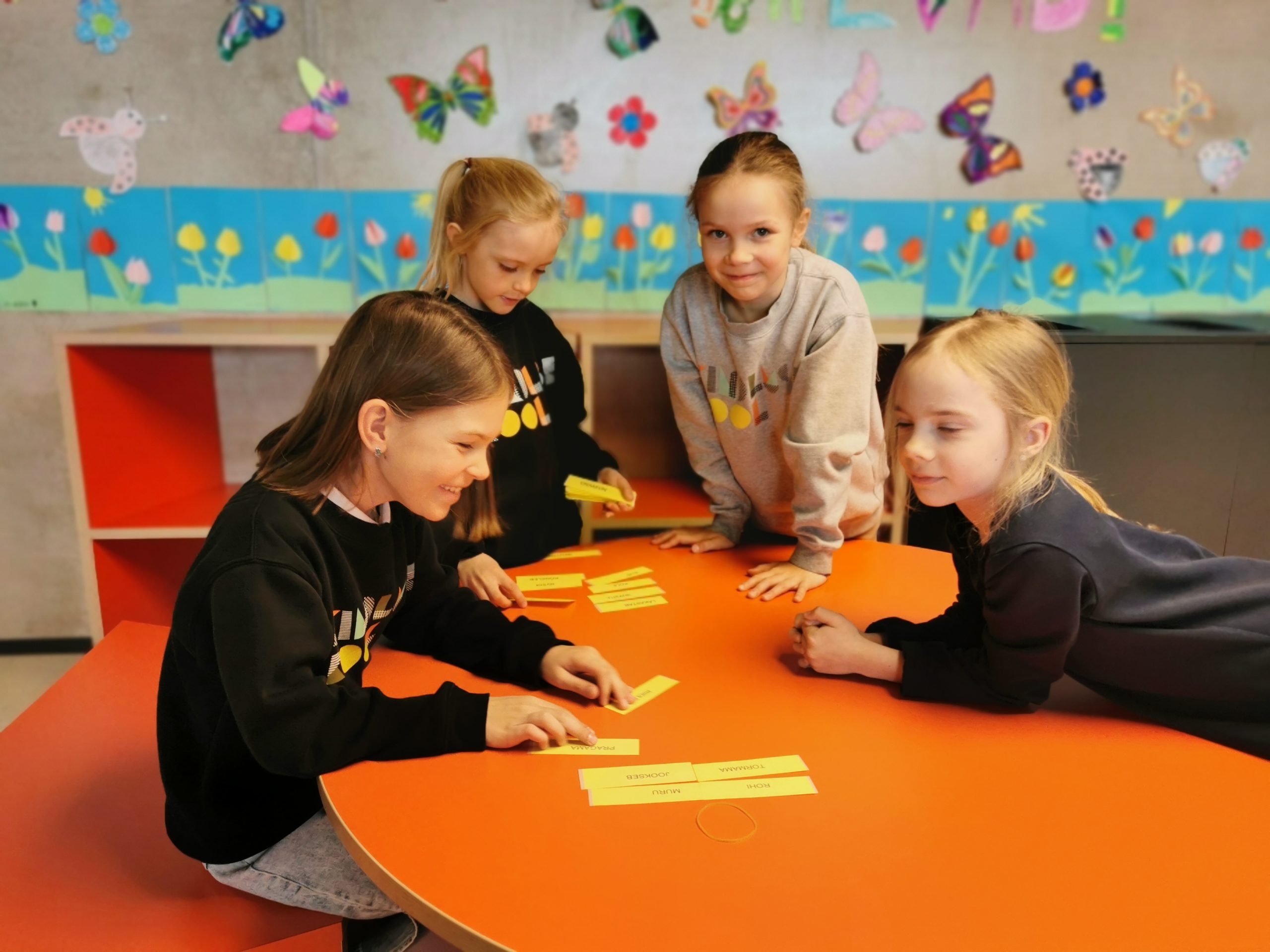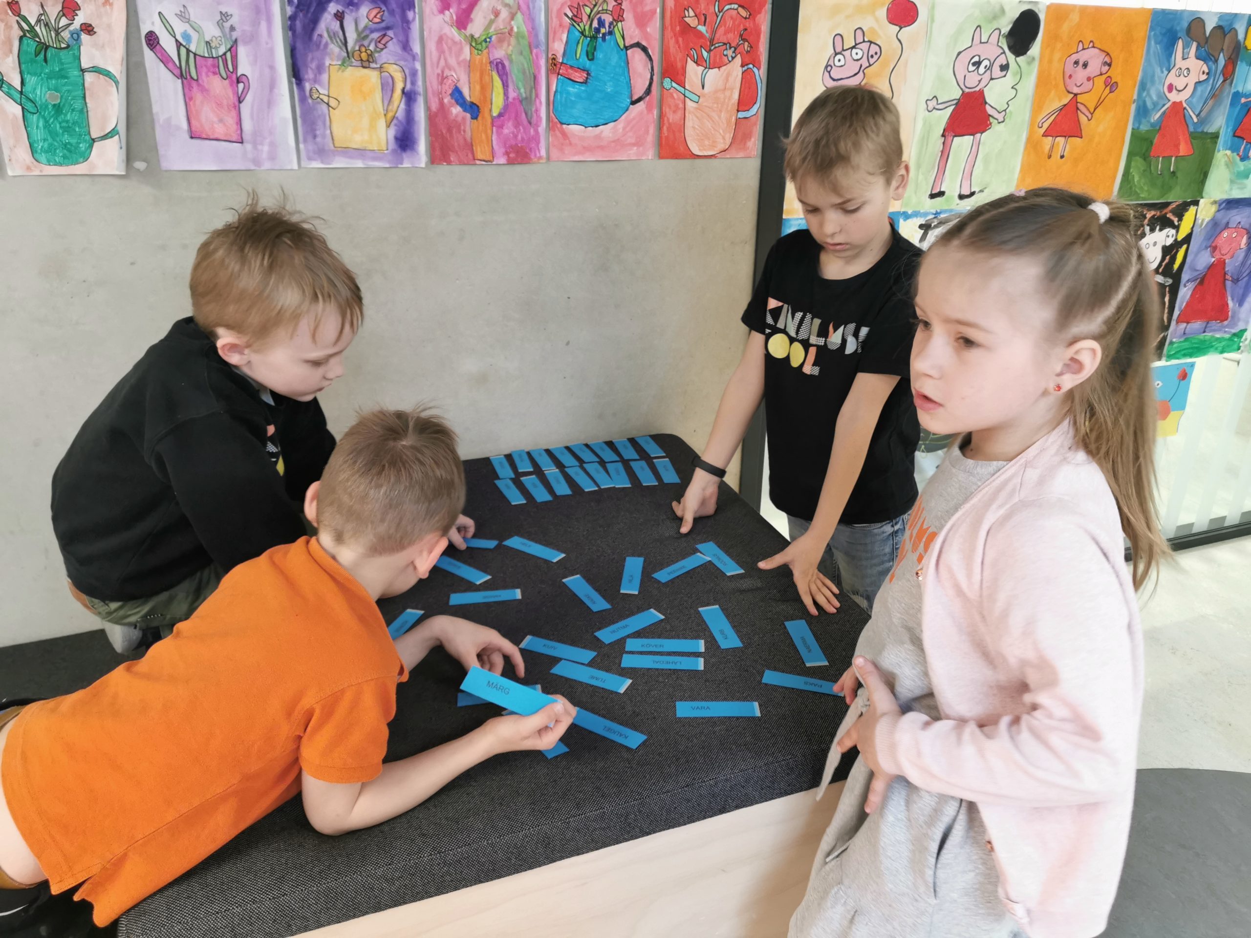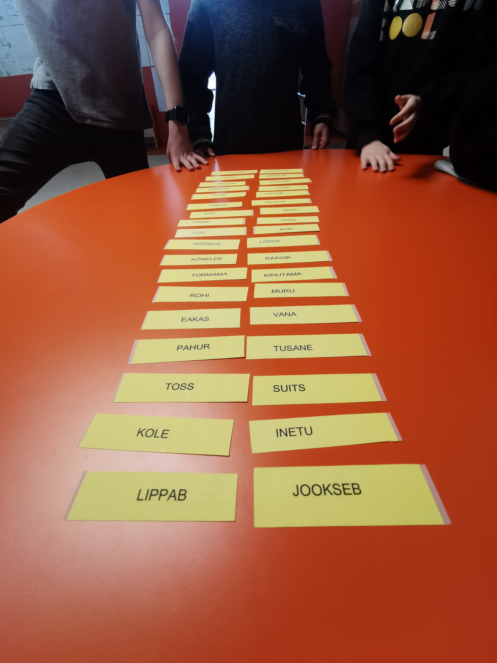 Samatähenduslikkude ja vastandsõnade õppimiseks tegime ühiselt rühmatööd. Kõik õpilased olid kiired ja nutikad tegutsejad. Sõnade paarid said väga kiiresti leitud.